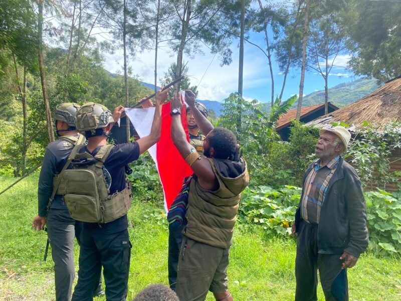 Papua Tengah – Pos Tinggi Nambut Satgas Pamtas RI-PNG Kewilayahan Yonif 112/DJ bersama Masyarakat dengan penuh semangat melaksanakan pengibaran bendera merah putih sebagai wujud cinta tanah air di Distrik Tinggi Nambut Kab. Puncak Jaya Prov. Papua Tengah, Rabu (03/12/2025).