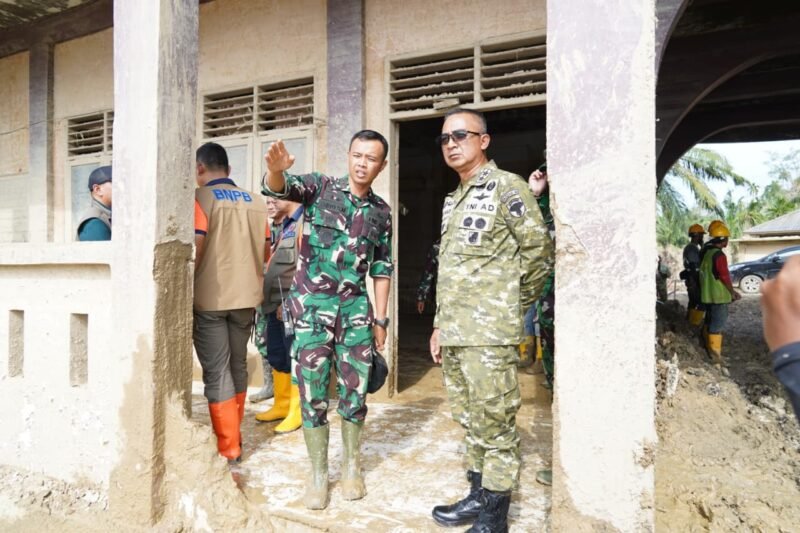 Aceh Tamiang – Panglima Komando Daerah Militer Iskandar Muda (Pangdam IM) Mayor Jenderal TNI Joko Hadi Susilo, S.I.P., meninjau secara langsung penanganan pasca bencana alam banjir bandang yang melanda Kabupaten Aceh Tamiang, Rabu (31/12/2025). Kunjungan ini merupakan wujud nyata kepedulian dan tanggung jawab TNI Angkatan Darat dalam memastikan percepatan pemulihan pascabencana serta membantu masyarakat yang terdampak.