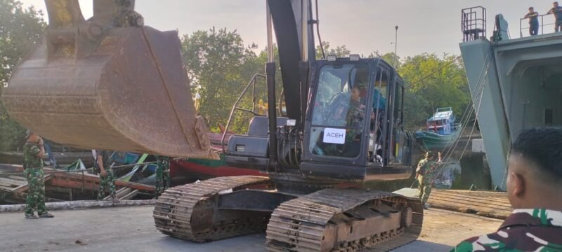 Setibanya di pelabuhan, kapal langsung melaksanakan proses pembongkaran perbekalan yang memuat berbagai jenis material alat berat. Beragam peralatan yang diturunkan tersebut memiliki peran krusial dalam mendukung penanganan kerusakan infrastruktur, pembukaan akses jalan, serta normalisasi kawasan yang masih terdampak banjir. Muatan yang dibawa meliputi crane yang dilengkapi komponen jembatan, trado beserta jembatan, beberapa unit bulldozer, satu unit ekskavator, dump truck berkapasitas delapan ton yang dilengkapi pasokan bahan bakar, serta truk tangki berkapasitas delapan ton.