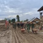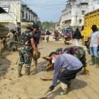 Aceh Utara – Personel Satuan Tugas Penanggulangan Bencana Alam (Satgas Gulbencal) dari Zeni Angkatan Darat bekerja…