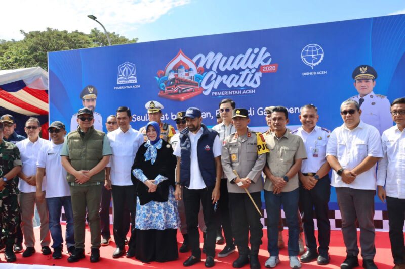 Banda Aceh – Unsur Forum Koordinasi Pimpinan Daerah (Forkopimda) Aceh menghadiri sekaligus melepas peserta Program Mudik Gratis Pemerintah Aceh Tahun 2026 yang berlangsung di Depo Angkutan Massal Transkutaraja, Komplek Terminal Tipe A Batoh, Banda Aceh, Minggu, 15 Maret 2026 pagi.