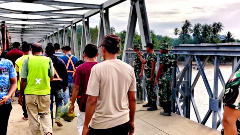 Bireuen — Jembatan Teupin Mane yang terletak di Kecamatan Juli, Kabupaten Bireuen, yang sempat ambruk akibat terjangan banjir bandang pada 26 November 2025, akhirnya berhasil diselesaikan pembangunannya pada Minggu (14/12/2025) sore. Rampungnya jembatan darurat tersebut disambut dengan rasa bahagia dan syukur oleh masyarakat, mengingat jalur ini merupakan akses vital yang menghubungkan Desa Beunyot dengan Desa Teupin Mane, Kecamatan Juli, Kabupaten Bireuen.