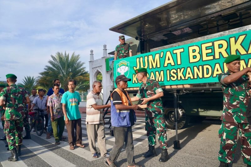 Banda Aceh – Komando Daerah Militer Iskandar Muda (Kodam IM) kembali meneguhkan komitmennya dalam pengabdian kepada masyarakat melalui kegiatan sosial bertajuk “Jumat Berkah”. Kegiatan penuh makna ini dilaksanakan di depan Gerbang Masjid Raya Baiturrahman Banda Aceh, pada Jumat (17/10/2025), sebagai salah satu wujud nyata kepedulian Kodam IM terhadap sesama, khususnya masyarakat kecil yang membutuhkan.