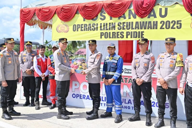 Pidie – Dalam rangka memastikan kesiapsiagaan personel selama pengamanan Natal dan Tahun Baru, Kapolres Pidie AKBP Jaka Mulyana, SIK, MIK didampingi Wakapolres Pidie, para Pejabat Utama Polres Pidie, serta Ketua Bhayangkari Cabang Pidie melaksanakan peninjauan sekaligus penyerahan bingkisan kepada petugas di Pos Pengamanan dan Pos Pantau Operasi Lilin Seulawah 2025.