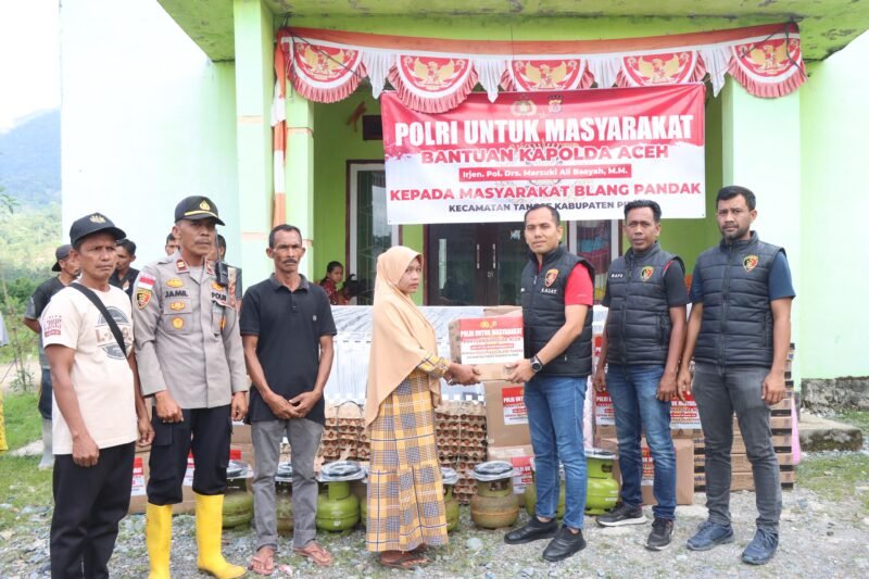 Pidie – Kepolisian Daerah Aceh melalui Polres Pidie menyalurkan bantuan kemanusiaan dari Kapolda Aceh kepada warga terdampak bencana di Gampong Blang Pandak, Kecamatan Tangse, Kabupaten Pidie, Minggu, (4/1/2026).