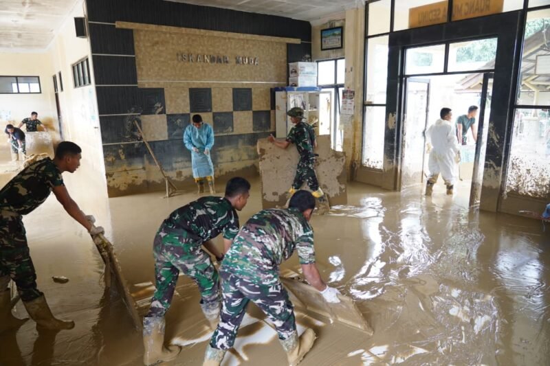Kegiatan pembersihan difokuskan pada area-area penting rumah sakit, antara lain ruang pelayanan pasien, ruang rawat inap, saluran drainase, halaman rumah sakit, serta fasilitas umum lainnya yang terdampak banjir. Dengan menggunakan peralatan sederhana, para prajurit bekerja secara terpadu dan penuh semangat, menunjukkan kepedulian serta tanggung jawab sosial TNI terhadap masyarakat yang sedang mengalami musibah.