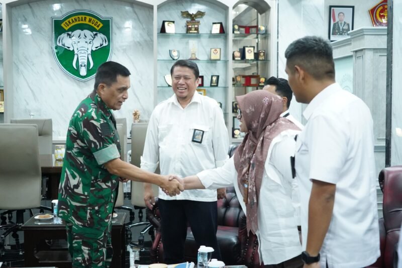Banda Aceh – Panglima Komando Daerah Militer Iskandar Muda (Pangdam IM), Mayor Jenderal TNI Niko Fahrizal, M.Tr.(Han)., menerima audiensi Kepala Balai Penataan Bangunan, Prasarana dan Kawasan (BPBPK) Aceh, Tommy Permadhi, beserta rombongan di ruang kerja Pangdam IM, Makodam Iskandar Muda, Senin (1/9/2025).