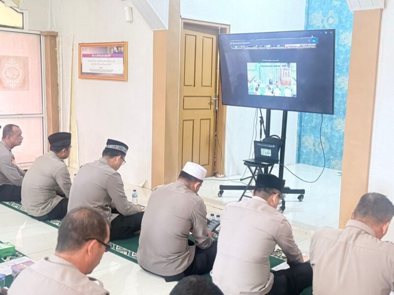 Kegiatan yang berlangsung di Musolla Ar-Rahim Polres Pidie tersebut diikuti langsung oleh Kapolres Pidie AKBP Jaka Mulyana, SIK, MIK, didampingi Wakapolres Kompol Dwi Arys Purwoko, S.IP, SIK, MH, para Pejabat Utama (PJU), perwira staf, personel brigadir, serta ASN Polres Pidie.