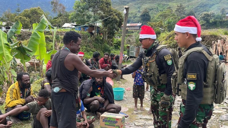 Papua Tengah – Dalam rangka menyambut Hari Raya Natal 2025, Satgas Yonif 112/DJ Pos Kp 55 melakukan aksi simpatik dengan mendatangi warga di Kampung Kalian Banak Distrik Pagaleme Kabupaten Puncak Jaya, Papua Tengah (Senin 22/12/2025)