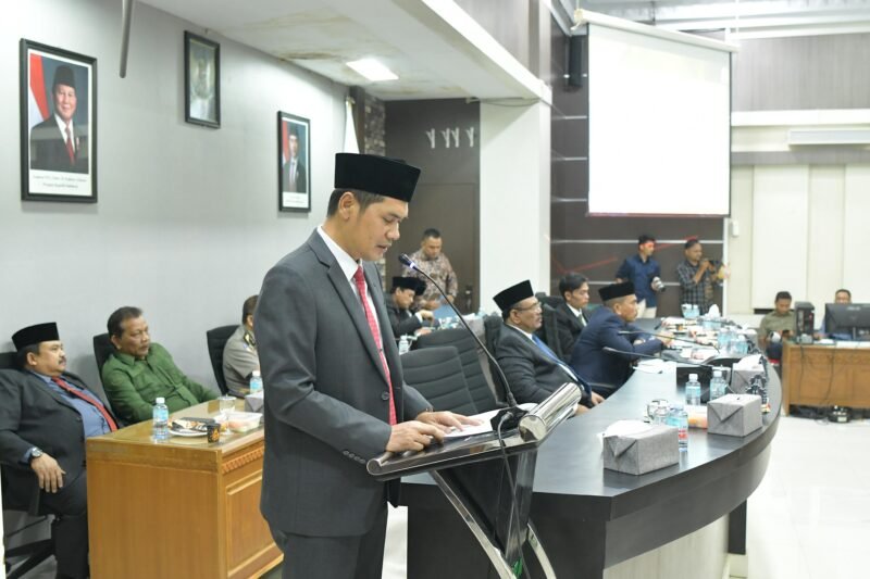 Banda Aceh – Sekretaris Daerah Aceh M.Nasir mewakili Gubernur Aceh, menyampaikan Nota Keuangan beserta Rancangan Qanun Aceh tentang Perubahan Anggaran Pendapatan dan Belanja Aceh (APBA) Tahun Anggaran 2025 dalam Rapat Paripurna Dewan Perwakilan Rakyat Aceh (DPRA), Jumat malam (26/9). Paripurna berlangsung dengan dipimpin Wakil Ketua DPRA Ali Basrah dan dihadiri para anggota dewan, unsur forkopimda Aceh, hingga para pejabat utama pemerintah Aceh.