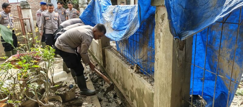 Pidie  – Kepedulian Polri terhadap masyarakat kembali ditunjukkan oleh Personel Polres Pidie melalui aksi gotong royong membersihkan rumah warga terdampak banjir. Minggu, (28/12/ 2025).