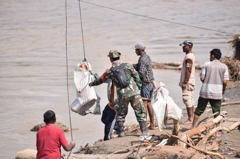 Material banjir berupa kayu, lumpur, dan bebatuan masih memenuhi alur sungai, membuat proses penyeberangan berisiko tinggi. Sertu Edi memprioritaskan kelompok rentan—seperti anak-anak, lansia, dan perempuan—untuk memastikan mereka dapat menyeberang dengan aman.