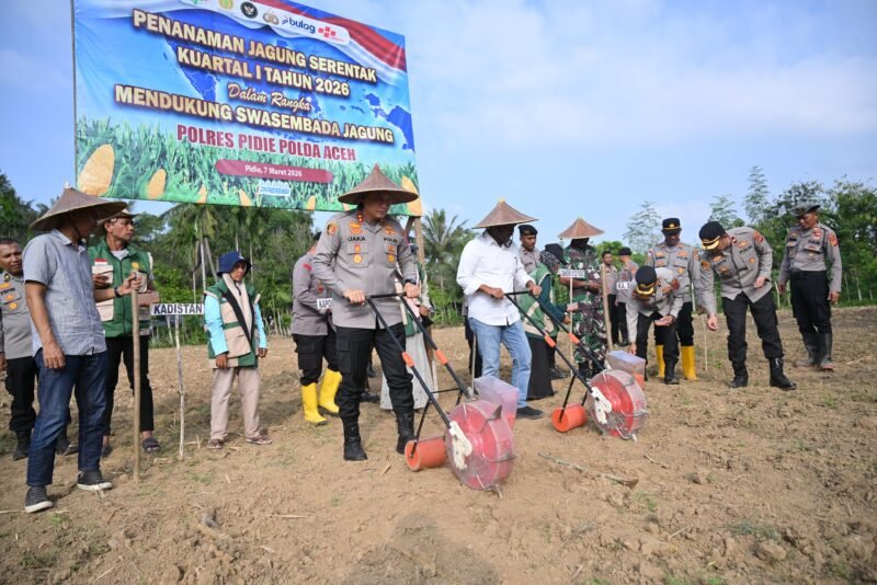 “Program tanam jagung ini merupakan upaya bersama antara Polri, pemerintah daerah dan masyarakat dalam memperkuat ketahanan pangan nasional serta mendorong terciptanya swasembada jagung,” ujar Kapolres Pidie.