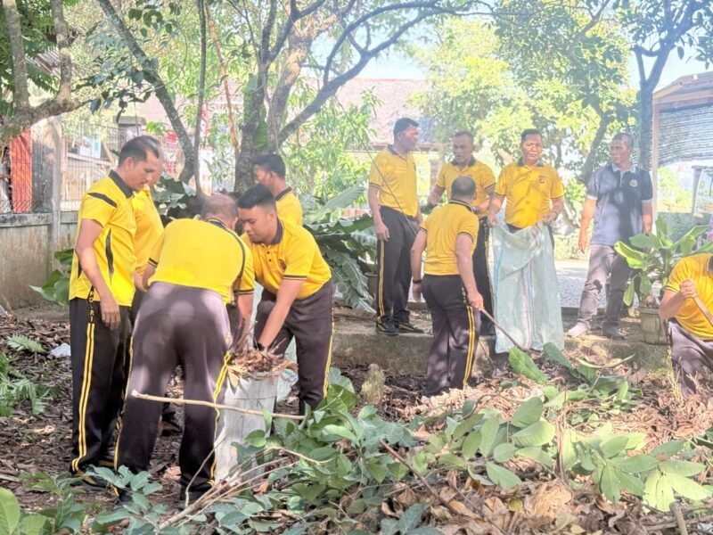 Pidie – Polres Pidie bersama Jajaran Polsek Kembali melaksanakan program “Polisi Meuseuraya” dengan menggelar kegiatan gotong royong membersihkan lahan yang akan dijadikan lokasi Program Gampong Mandiri di Gampong Meugit, Kecamatan Mutiara Timur, Kabupaten Pidie, Jumat (3/10/2025) pagi.