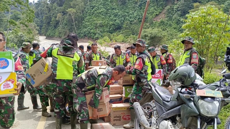 Aceh Tenggara — Dalam semangat pengabdian dan kepedulian terhadap sesama, prajurit jajaran Kodim 0108/Agara, di bawah komando Kodam Iskandar Muda, menembus medan berat pegunungan untuk menyalurkan bantuan logistik kepada warga terdampak bencana di Desa Rumah Bundar, Kecamatan Ketambe, Kabupaten Aceh Tenggara. Aksi kemanusiaan ini dilakukan pada Selasa (09/12/2025), sebagai bukti nyata komitmen TNI untuk selalu hadir di tengah masyarakat di saat sulit.