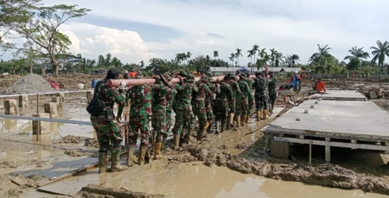 Satgas Gulbencal Kodam IM Laksanakan Pembersihan Pasca banjir di Langkahan, Aceh Utara