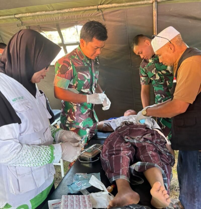 Aceh Tengah – Upaya pemulihan pascabencana alam terus dilakukan di Kecamatan Rusip Antara, Kabupaten Aceh Tengah, melalui kegiatan bakti kesehatan berupa sunat massal, pengobatan gratis, cek kesehatan, serta imunisasi polio dan campak. Kegiatan ini berlangsung di halaman Puskesmas Pameu, Kampung Merandeh Paya, pada Jumat, 23 Januari 2026, sejak pukul 08.30 WIB hingga selesai, dengan melibatkan berbagai unsur pemerintah, TNI, tenaga kesehatan, dan relawan.