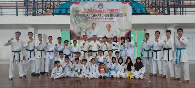 Banda Aceh – Perguruan Wadokai Karate-Do Indonesia Provinsi Aceh melaksanakan Ujian Kenaikan Tingkat (UKT) Tahun 2026 yang berlangsung di Hall Serbaguna Stadion Harapan Bangsa, Banda Aceh, Minggu (25/1/2026). Kegiatan ini diikuti oleh sekitar 300 peserta dari berbagai dojo yang tersebar di wilayah Banda Aceh dan Aceh Besar.