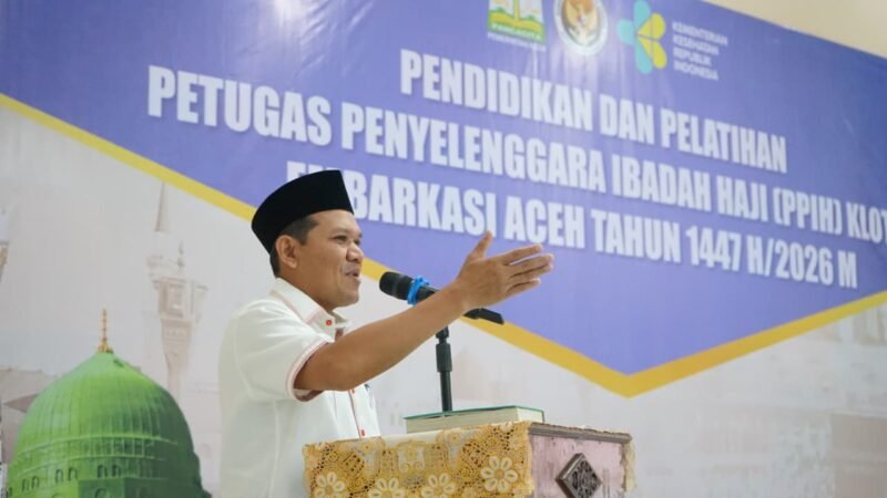 Banda Aceh — Wakil Gubernur Aceh, Fadhlullah, S.E., secara resmi membuka kegiatan Pendidikan dan Pelatihan Petugas Penyelenggara Ibadah Haji (PPIH) Kloter Embarkasi Aceh Tahun 1447 H/2026 M yang berlangsung di Aula Arafah, Asrama Haji Aceh, Minggu (1/2/2026).